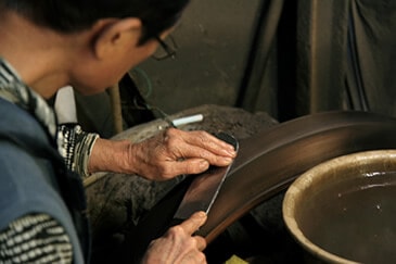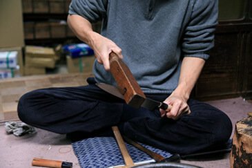Any minor distortions from the nakago heating is corrected and the knife undergoes a final polish to make it ready for use by the chef.