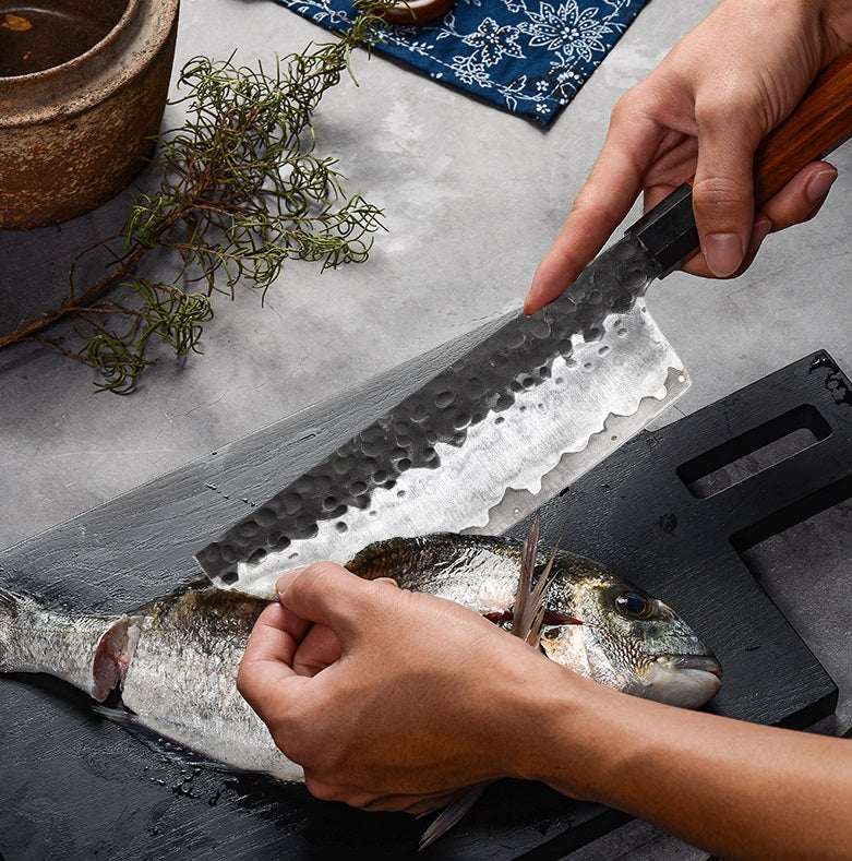 Originally crafted for all manners of vegetable preparations, the nakira has been a kitchen staple for centuries. However, the knife has taken on a second function recently as more and more chefs learn to appreciate its special design.